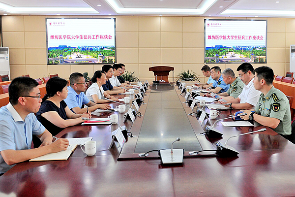 6月3日下午,潍坊市军分区司令员丁峰、潍城区办公室主任李铁柱、武装部部长赵朋远一行到我校调研征兵及军地融合发展相关工作。校长管英俊、副校长朱军及相关部门、院(系)负责人参加座谈。