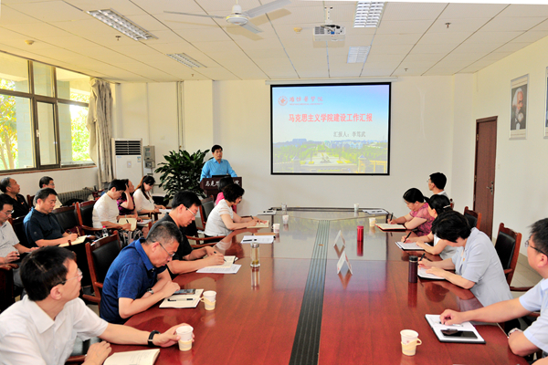 马克思主义学院院长李笃武从马克思主义学院成立以来取得的主要成效、存在的问题、学院建设的建议三个方面作了关于马克思主义学院建设情况的汇报。