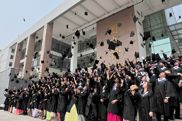 校学位评定委员会主席、院长管英俊为获得学士学位的国际学生一一扶正流苏,颁发学士学位证书。