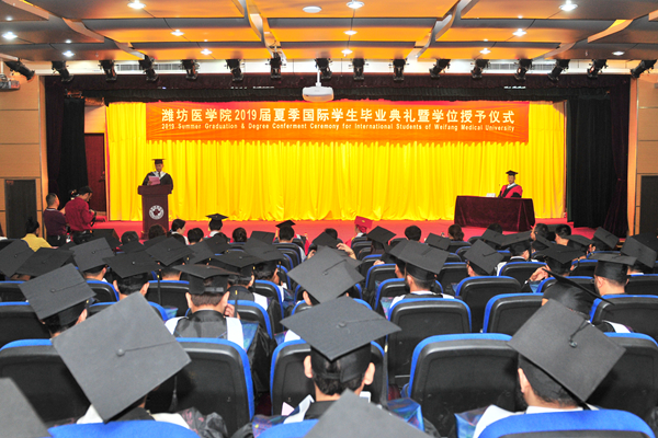 孙宏伟在典礼上讲话,向圆满完成学业的国际学生表示祝贺,向为我校国际学生教育工作付出辛勤劳动的教师们表示衷心的感谢。他希望毕业生不忘初心,牢记嘱托,做社会责任的承担者、和平友谊的传播者和母校发展的支持者。刘军宣读了《关于授予2019届夏季国际学生学士学位的决定》。