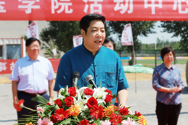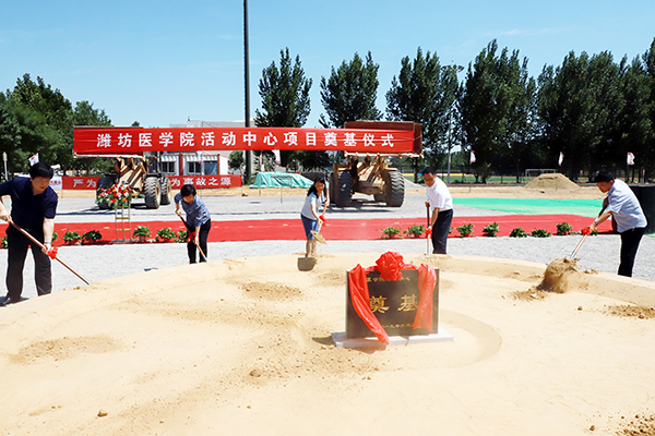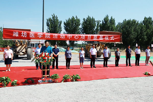 6月22日上午,潍坊医学院活动中心项目奠基仪式在我校浮烟山校区隆重举行。院长管英俊,党委副书记张潍华,副院长孙宏伟、朱军、井西学、葛国文,纪委书记田艳玲,潍城区委副书记李全吉,潍城区望留街道办事处主任王帅,潍坊昌大建设集团有限公司总经理朱九洲,潍坊蓝图工程项目管理有限公司董事长翟志敏,院学生会主席刘国梁等出席仪式并共同为活动中心培土奠基。仪式由井西学主持。