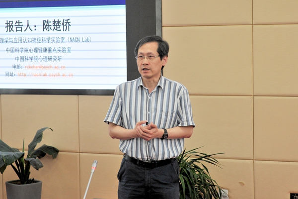 揭牌仪式后,陈楚侨研究员做了题为《跨临床与亚临床群体心理健康研究》的专题报告,他详细阐述了跨临床与亚临床群体心理研究的现状及未来研究方向,阐明了共建中心建设的意义、目标、展望及拟解决的关键问题等。心理学系全体教师及研究生、本科生代表认真听讲,陈楚侨、王毅还与师生们进行了学术讨论。