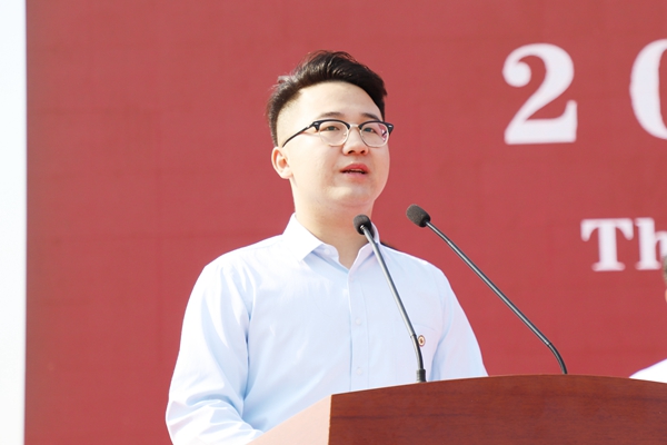 临床医学院解鹏代表2019届全体毕业生发言。他回忆了自己美好的大学时光,表达了对母校和老师的深深眷恋和感激之情,号召全体毕业生争做胸怀理想、追求卓越的人,以梦为马,不负韶华。