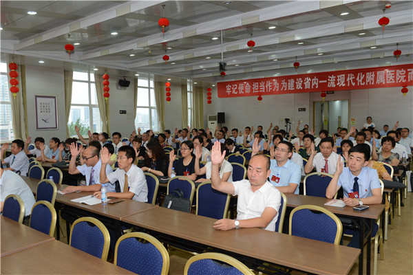 大会的主题是:以习近平新时代中国特色社会主义思想为指导,认真贯彻落实党的十九大和十九届二中、三中全会精神,全面总结过去的工作,谋划部署今后五年的改革发展任务,团结动员全院广大党员和教职医务员工,解放思想,开拓创新,牢记使命,担当作为,为建设省内一流的现代化附属医院而努力奋斗。