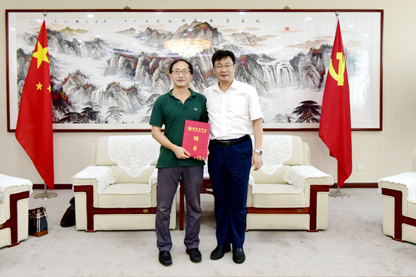 8月14日,学校举行聘任仪式,聘请青岛科技大学李速明教授为我校客座教授。副院长刘军为李速明教授颁发聘书。