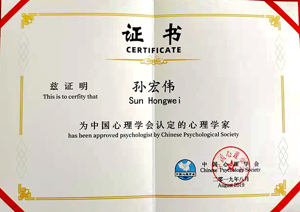 近日,中国心理学会发布聘书,认定潍坊医学院副院长孙宏伟教授为全国第八批心理学家,该批次全国共有22位专家学者入选,孙宏伟教授是该批次我省唯一入选者。