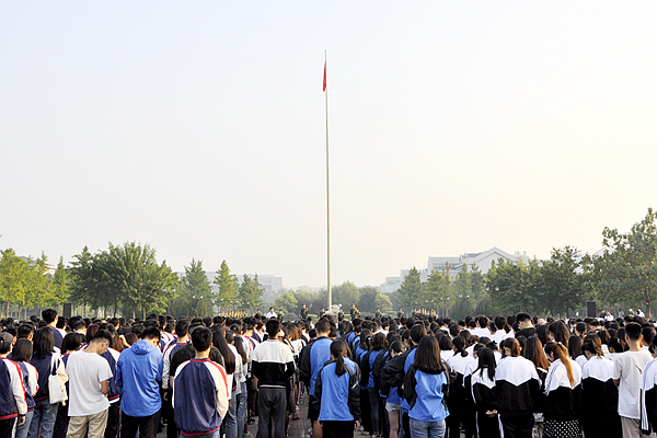 升旗仪式后,校党委宣传部部长王世群讲话。他围绕“青春的姿态”和过好新学期大学生活,向同学们提出了希望:应当保持忠诚爱国的姿态,把青年的家国情怀和远大理想根植于对国家和民族历史文化的深刻理解,高举爱国主义旗帜,自强不息,锐意进取,真正把爱国之志变成报国之行;保持好学求知的姿态,沉潜静心、穷理明辨,踏踏实实学真知、孜孜不倦求真理,涵养真性情、练就真本领;保持勇于拼搏的姿态,在新时代朝气蓬勃、勇于争先。牢记习近平总书记的殷殷嘱托,“爱国 励志 求真 力行”,认真学习、勤奋努力,以实际行动向中华人民共和国成立70周年献礼。