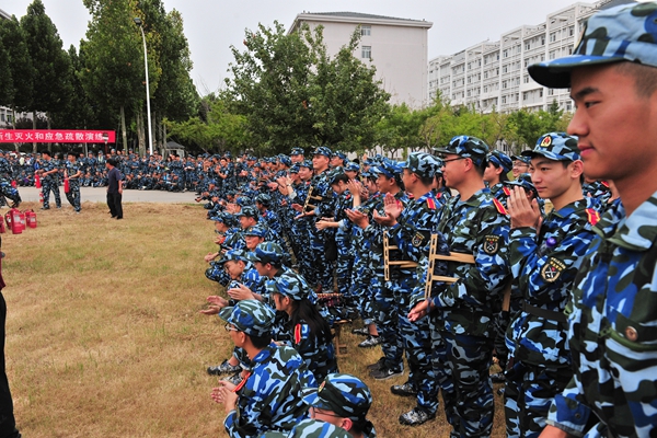 保卫处、学生工作处、团委、宣传部、后勤管理处等相关部门负责人和工作人员、2019级全体辅导员、2019级全体新生、新生军训团全体教官及教职工代表现场观摩演练。
