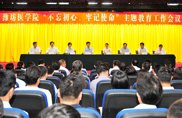 唐德才在讲话中传达了中央、省委“不忘初心、牢记使命”主题教育工作会议精神和工作部署,介绍了巡回指导组的工作职责,充分肯定了学校党委前期准备工作,就潍坊医学院落实好主题教育各项工作任务提出七个方面的指导意见:一是要始终聚焦主题主线。把深入学习贯彻习近平新时代中国特色社会主义思想作为根本任务和主线,始终做到聚焦主题不偏离、抓住主线不放松,切实增强“四个意识”,坚定“四个自信”,坚决做到“两个维护”。二是要准确把握目标要求。深刻领会、准确把握“十二字”总要求和“五句话”目标,教育引领党员干部在学习教育、调查研究中悟初心、守初心,在检视问题、整改落实中勇作为、践使命,确保实现预期目标。三是要统筹推进四项重点措施。坚持把学习教育、调查研究、检视问题、整改落实贯彻全过程,有机衔接、一体贯通,推动主题教育各项任务要求落到实处。四是要注重分级分类推进。改进组织指导方式,搭建实践载体,既要抓住处级以上领导班子和领导干部这个重点,又要确保全覆盖,提高主题教育的吸引力和感染力。五是要着力解决实际问题。充分借鉴运用第一批主题教育单位的经验和成果,紧扣高校工作实际和特点,奔着问题去、盯着问题改,把问题解决的怎么样作为衡量主题教育成效的重要标准。六是要坚决防止形式主义。积极探索改进主题教育推进方式,把力戒形式主义贯彻全过程,以好的作风推进主题教育。七是要切实加强组织领导。要把开展主题教育作为重大政治任务,摆上重要议事日程,层层传导责任压力,确保高标准高质量推进主题教育,真正取得群众满意的实际效果。