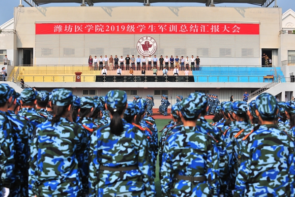 朱军作军训总结讲话。他代表学校向圆满完成军训任务的同学们表示亲切的慰问,向在军训中涌现出来的先进集体和个人表示热烈的祝贺,向所有教官表示衷心的感谢。他指出,在军训期间,全体2019级同学行动一致、步履铿锵、动作规范、队列整齐,充分展现了刚毅果敢的军人气质和昂扬向上的精神风貌。通过军训,大家锻炼了强健体魄,磨练了钢铁意志,强化了严明纪律,熔铸了坚定信念。同学们努力拼搏的样子,不仅是青春最美的姿态,更是“自强不息 锐意进取”潍医精神的真实写照。