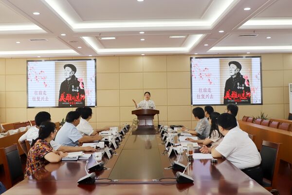 “什么是坚定信仰,什么是初心本色?张富清用一生给出答案。24岁,在生与死之间,他选择冲锋在前,在战火洗礼中成长为董存瑞式的战斗英雄。31岁,在小家与国家之间,他选择服从大局,到偏远异乡投身社会主义建设。43岁,在责任与母亲之间,他选择割舍亲情,工作繁忙,他只能向着家乡的方向,泪流满面,跪拜母亲。半个多世纪,无论顺境逆境,他选择淡然处之,将英雄过往尘封在沧桑的记忆。95岁高龄,在新中国迎来70华诞之时,他支撑起独腿,又一次挺直脊梁,向祖国和人民致以崇高军礼。英雄无言,深藏功与名。”王心璐同学向大家动情讲述了老英雄张富清60多年深藏功名,一辈子坚守初心、不改本色的感人事迹,与会人员无不动容。管英俊讲到,这是学校党委注重学习的针对性和实效性,不断探索创新学习方式,真正把学习成果转化为提升能力、指导实践、推动工作的实际举措。