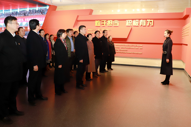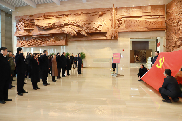 在展馆序厅,面对鲜红的中国共产党党旗,李明率领党员领导干部重温入党誓词,铭记初心使命。铿锵有力的宣誓声响彻大厅,深深感染着全体在场党员。