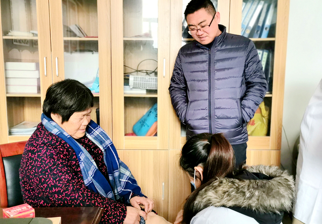 12月8日,寒气袭人,在我校第四轮省派第一书记帮包村的贫困户家里,洋溢着暖意。“老人的心愿就是腿脚好好的。” 滨州市阔宇公司工作人员正在用艾草膏给一位腿痛的阿姨刮痧,腰背痛的大爷在旁边询问艾草贴的用法。