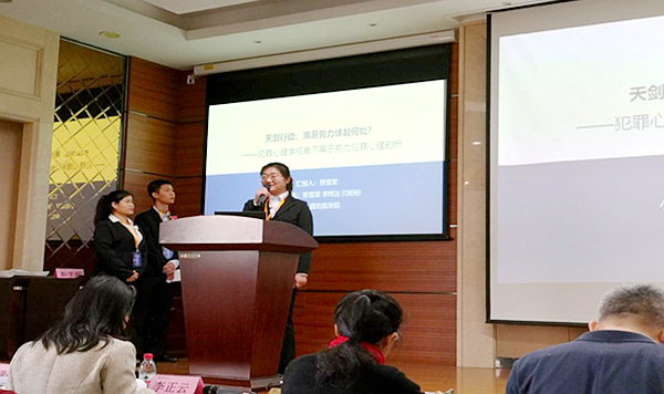 在应用心理案例开发决赛中,经过与北京大学、北京师范大学、华东师范大学等14所高校代表队的激烈角逐。我校晋雪莹同学汇报的《天剑行动,黑恶势力缘起何处?—— 犯罪心理学视角下黑恶势力犯罪心理剖析》给现场观众留下了深刻的印象,专家对案例进行了精彩的点评,并对该案例在我国社会心理健康服务体系建设工作中的应用价值给予了高度评价,受到了专家评委以及兄弟院校的充分肯定。