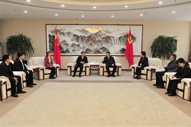 12月13日上午,山东省教育厅副厅长戴龙成来到我校调研,党委书记李明,院长管英俊,党委副书记张潍华,副院长朱军、刘军在办公楼五楼会议室亲切会见了戴龙成,并进行了座谈交流。