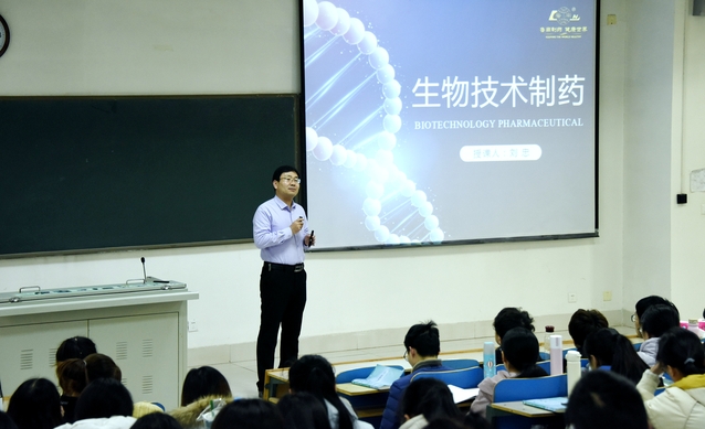 12月19日下午,一堂别开生面的《生物技术制药》课正在教学楼A409室展开。药学院产业教授刘忠博士走进2017级本科生课堂,为学生授课。