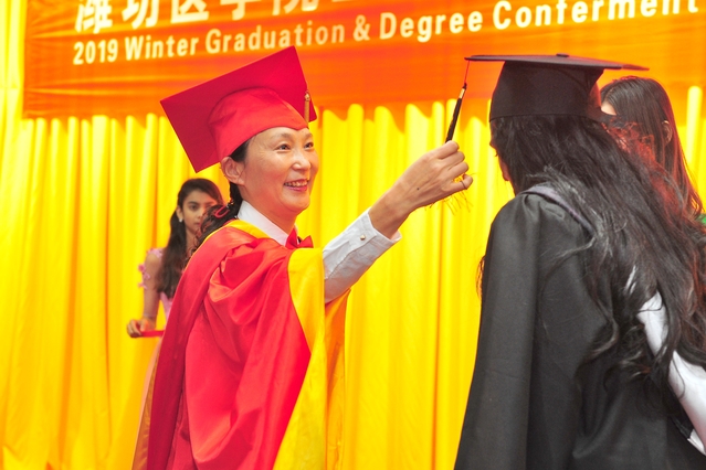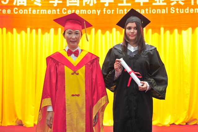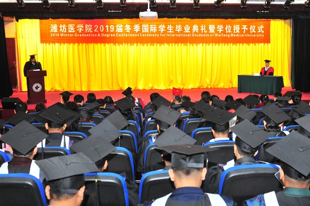 学校相关部门、院(系)和实习医院负责人,教师代表、全体2019届冬季毕业国际学生及其家属、在校生国际学生代表和国际合作交流处(国际教育学院)的全体工作人员参加了典礼。