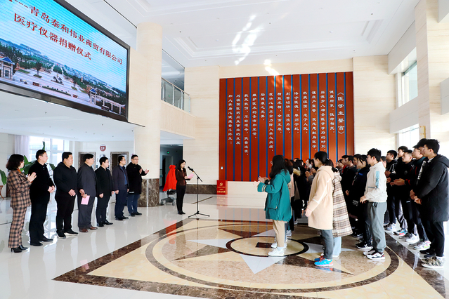 青岛泰和伟业商贸有限公司为我校捐赠价值约140万元的华声超声医疗设备,这是我校校企合作的又一次有益尝试,有利于实现校企优势互补、资源共享,对于学生麻醉可视化技能培养、科研创新能力培养和在线课程资源建设必将起到推动作用。
