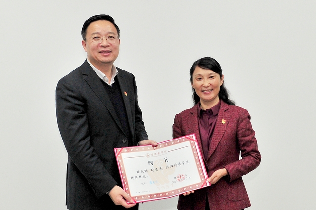 签约仪式上,管英俊与张贵民代表双方共同签署了“潍坊医学院—鲁南制药集团战略合作协议”。学校聘任张贵民为我校特聘教授,院长管英俊为张贵民颁发聘书。
