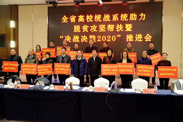1月3日至4日,学校组织党外专家教授赴郓城县参加全省高校统战系统助力脱贫攻坚帮扶暨“决战决胜2020”推进会,并开展义诊活动。省委教育工委副书记,省教育厅党组副书记、副厅长冯继康出席系列活动并在推进会上讲话。我校统战部部长王爱成带队参加,并在推进会上作专题发言。在推进会上,王爱成书赠“乡村振兴 情满郓城”“脱贫攻坚 决战决胜”两幅书法作品,助推打赢脱贫攻坚战,受到广泛好评。