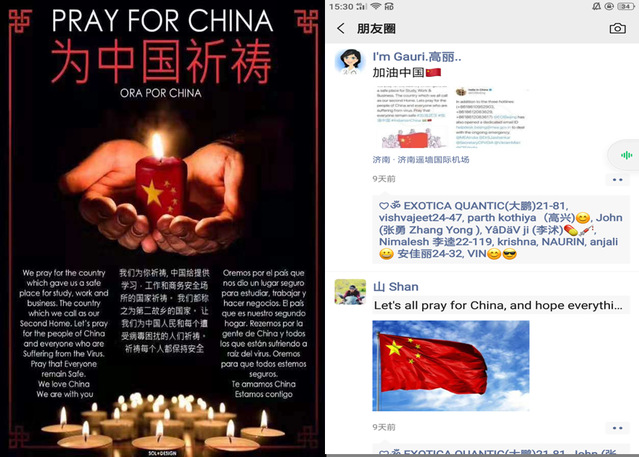 2月3日2点钟,一位已回国的留学生在朋友圈发了一颗镶着五颗金星的大大的红心,旁边写着这样一段话:在这场战“疫”中,我们看到了中国人的强大,中国政府采取了令人难以置信的措施克服疫情,毫无疑问,我们不久就会听到好消息!