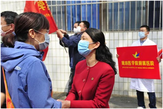 4月14日,我校最后一批5名援鄂医疗队员李春莲、范春华、秦宁宁、吴凯凯、姜君,结束隔离休养,平安返回潍坊。