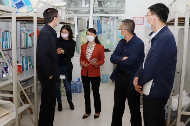 5月14日上午,院长管英俊、副院长葛国文带领相关部门负责人深入图书馆、教学楼、实验楼、学生公寓、施工现场等场所,对开学准备情况和安全工作进行检查。