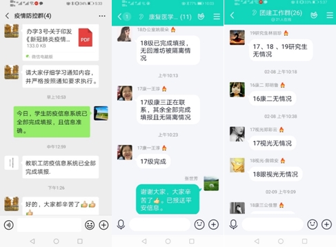 疫情就是命令,防控就是责任。面对突如其来的新型冠状病毒感染的肺炎疫情,康复医学院团学组织在学院党总支的领导下,密切关注疫情形势发展,严格落实上级通知要求,迅速响应,众志成城,积极作为,多措并举,压实防控责任,真情关心关爱,扎实推进学生疫情防控工作落实落地见效。