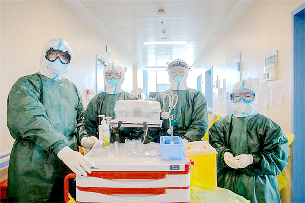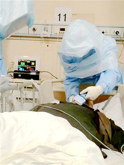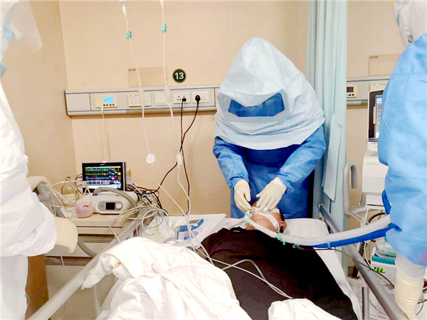 光谷院区所收治的新冠肺炎病人均为重症或危重症患者,病情危急,重症病人会出现严重的呼吸衰竭,在救治上的难度也会更大,实施气管插管进行有创呼吸支持治疗可以抢回更多的生命。气管插管是治疗冠状病毒肺炎极高危的操作,呼吸道传播和接触传播是冠状病毒肺炎最主要的传播方式,而气管插管暴露声门时麻醉医生需要近距离直接面对患者的呼吸道,感染风险极高。院区有16个重症病区和1个ICU,共800多张床位,小分队2人一组,一个工作班12小时,24小时值班,夜以继日地与死神赛跑,当危重症患者的“守护神”。
