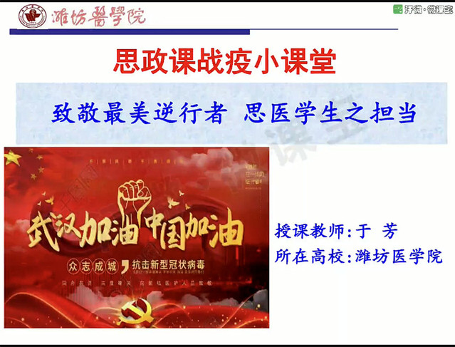 近日,我校马克思主义学院于芳老师讲授的《致敬最美逆行者 思医学生之担当》—— 思政课战疫小课堂通过网络平台推送后,受到了学生的广泛关注和强烈反响。