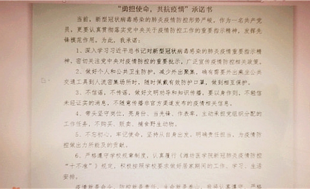 面对疫情,潍坊医学院党委牢牢扛起疫情防控政治责任,一手抓防控,一手抓发展,在有序推进新学期各项工作的同时,毫不放松抓实抓牢基层党组织建设,进一步严肃党内政治生活,采取在线开展“三会一课”、主题党日等多种形式,使党员教育和党的政治生活不断线,质量不降低,确保在抗疫情、保稳定、促发展等各方面积极发挥党组织的战斗堡垒作用和党员的先锋模范作用。各级党组织纷纷行动起来,线上主题党日丰富多彩。