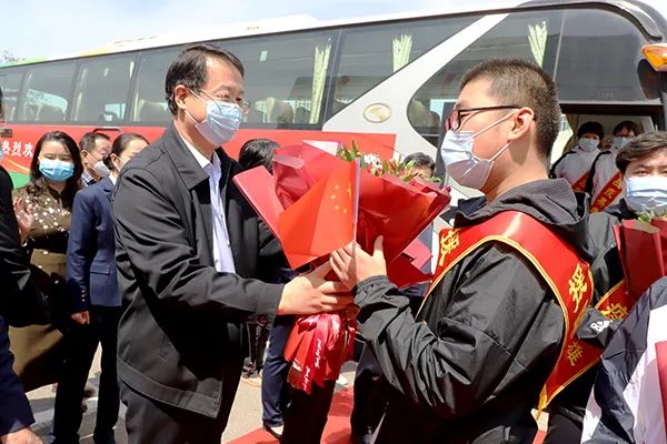 李明代表学校党委和全校教职医务员工,向附属医院援鄂战疫英雄们致以崇高的敬意,热烈欢迎他们胜利凯旋。他说,面对突如其来的新冠肺炎疫情,援鄂医护队员们积极响应习近平总书记和党中央号召,带头落实省委和学校党委部署要求,舍小家顾大家,用生命托付生命,以高尚的医德、精湛的医术、无畏的精神逆行出征、支援湖北,圆满完成了各项救援任务,为附院、为学校、为家乡赢得了赞誉。