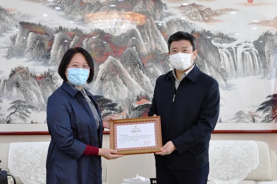 李明对叶红晖一行来访表示欢迎,他简要介绍了学校基本情况和学校防控新冠肺炎疫情工作,详细了解了日照市中心医院的发展情况,对医院重视教学工作的做法表示赞许,希望医院继续突出特色,依托区域优势,打造医院亮点。他表示学校将进一步加强与医院的交流合作,通过医教协同促进双方共同发展。李明感谢医院对学校疫情防控工作的支持与帮助,为医院颁发了物资捐赠证书。