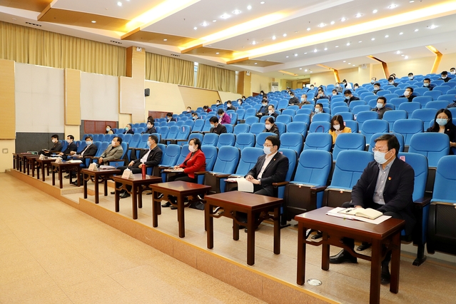 4月23日,学校在办公楼一楼报告厅召开2020年全面从严治党工作会议,校领导李明、管英俊、张潍华、孙宏伟、葛国文、刘军、田艳玲出席会议。党委书记李明在会议上作总结讲话,院长管英俊传达上级文件精神,党委副书记张潍华主持会议。