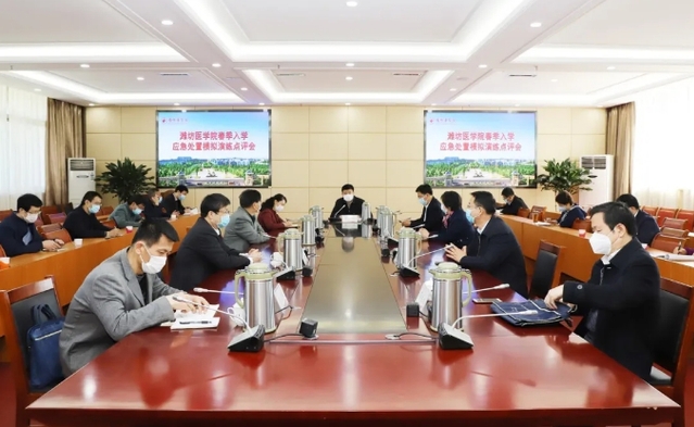 校领导李明、管英俊、张潍华、孙宏伟、葛国文、刘军现场观摩应急演练。副院长葛国文担任演练总指挥。市卫生健康委党组成员、计生协会常务副会长亓传敬,市教育局高教职教科二级主任科员马廷福,市场监管局餐饮科吕华鹏现场指导。学校新冠肺炎疫情处置工作领导小组各工作组组长、相关部门负责人及专家、博士;各学院党总支书记、副书记、全体辅导员;疫情防控应急处置场地联络员、学生联络员;角色模拟人员、工作人员等参与演练。