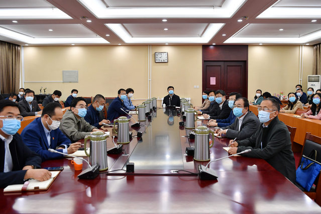 本次研讨会主题为学习中国高等教育、高等医学教育改革发展的形势与任务,更新教育理念,发挥学校特色优势,加快推进高水平医科大学建设。会议以视频连线方式,邀请遵义医科大学副校长、硕士生导师李春鸣教授作专题辅导报告。院长管英俊、副院长刘军围绕学习主题作了重点交流发言。