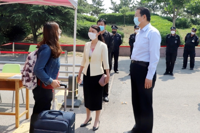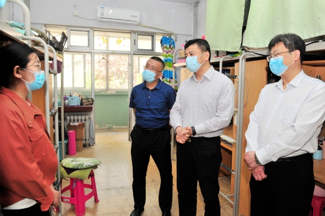 5月24日,党委书记李明、院长管英俊、副院长葛国文、刘军在相关部门负责人陪同下,分别来到虞河校区和浮烟山校区,实地查看学生返校情况,看望返校同学,慰问在一线坚守岗位的教职工。