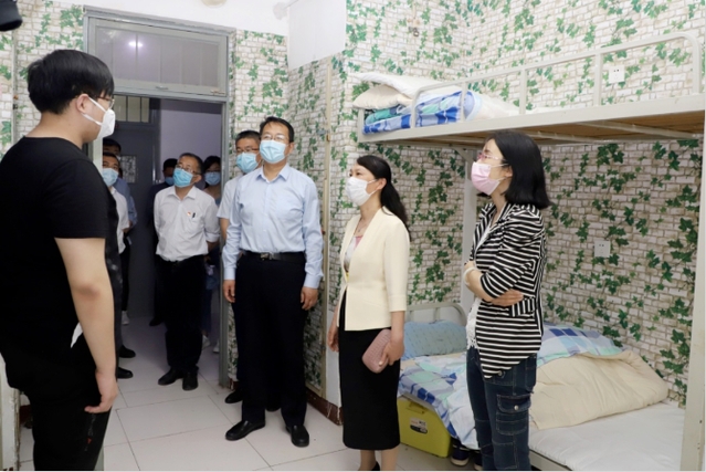 在学生公寓,校领导与返校学生亲切交谈,详细询问了他们的学习生活准备、入学后的心理调适以及毕业年级同学的就业等情况,希望同学们要遵守学校相关规定,开心地学习、愉快地生活。同学们表示,从返校准备开始,就收到了学校和老师们的温馨提示,回到学校后,收到学校精心准备的健康包,看到公寓正在安装空调,充分感受到了学校的亲切关怀,一定会珍惜返校时光,不辜负领导老师的期望。