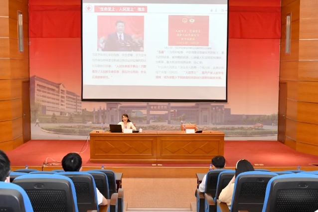 从显著的制度优势、强大的中国精神、磅礴的中国力量,管英俊讲述中国特色社会主义制度和国家治理体系强大的动员能力、组织能力和整合能力。她以鲜活的案例和动情的故事,从全校一盘棋迅速行动,到附属医院及时派出援鄂医疗队,从博士项目、心理援助贡献潍医智慧,到国家召唤、使命必达的潍医校友,向师生传递潍医人与祖国同呼吸共命运的家国情怀。