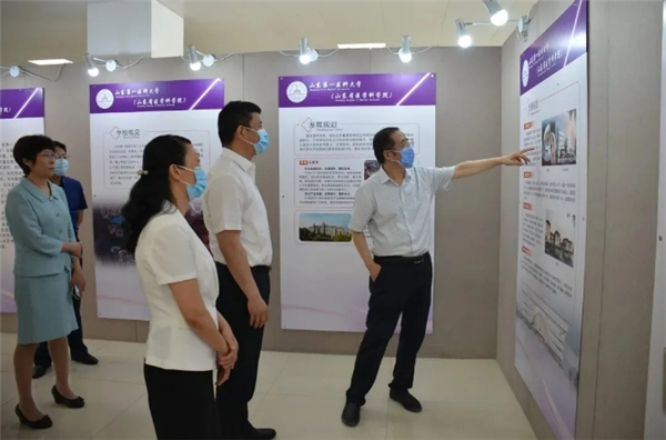 校领导一行还参观了校园及临床技能中心。山东第一医科大学(山东省医学科学院)党委办公室、发展规划与学科建设部负责同志及我校党委办公室(学院办公室)、宣传部、发展规划处、人事处、实践教学管理处、资产管理处、附属医院负责同志参加活动。