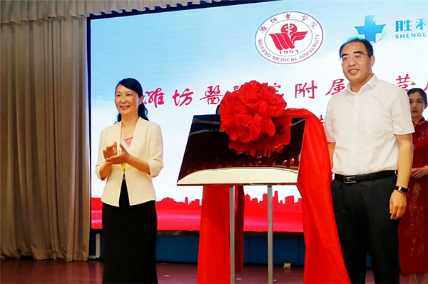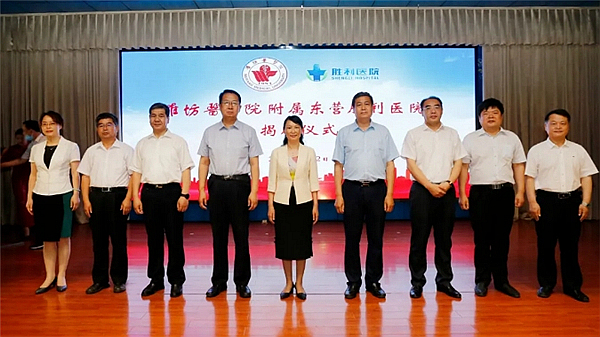 6月12日上午,我校附属东营胜利医院揭牌仪式在东营胜利医院举行。院长管英俊,副院长葛国文,东营市卫生健康委员会副主任宋勇,东营胜利医院院长周冰出席揭牌仪式。管英俊与周冰共同为潍坊医学院附属东营胜利医院揭牌。东营胜利医院党委书记赵学用主持仪式。
