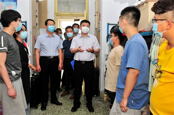 6月16日下午,在2020届毕业生即将告别母校之际,党委书记李明、副院长葛国文带领有关部门负责人来到虞河校区学生宿舍,为毕业生送去学校的温暖关怀和诚挚祝福。