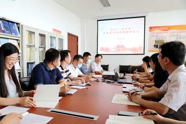 副院长孙宏伟以《“庆七一·学四史”之改革开放的经验与意义》为题,为发规国合教评党支部党员讲授党课。