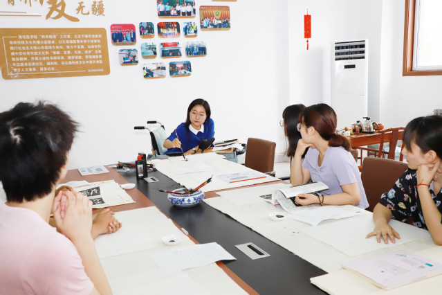 7月3日上午,潍坊医学院“乐道济世”书院阳光晓清工作室里,一场别开生面的分享交流会正在举行。“最美轮椅姐姐”刘晓清正在和青年学生交流她的励志故事和对中国书法艺术之美的独特见解。党委书记李明、副院长葛国文也来到了分享交流会现场,与刘晓清和在场师生互动交流。