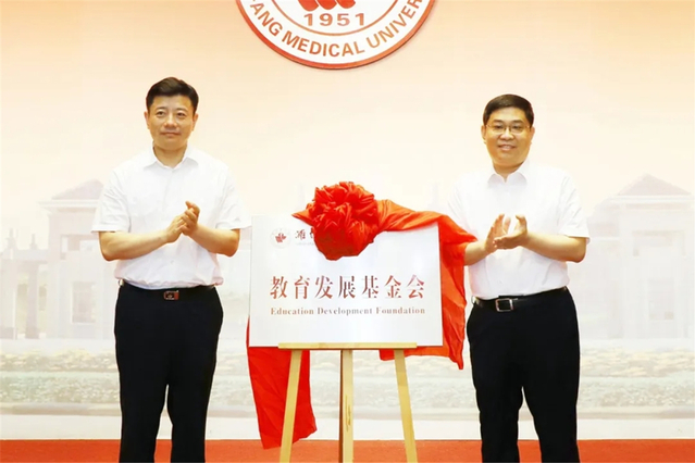 7月17日上午,潍坊医学院教育发展基金会成立大会暨第一届理事会第一次会议在浮烟山校区举行。党委书记李明与山东海王医药集团有限公司总裁、山东海王银河医药有限公司总裁史晓明共同为基金会揭牌。院长管英俊和史晓明分别致辞。院领导张潍华、孙宏伟、刘军、田艳玲等出席成立大会。成立大会由副院长刘军主持。