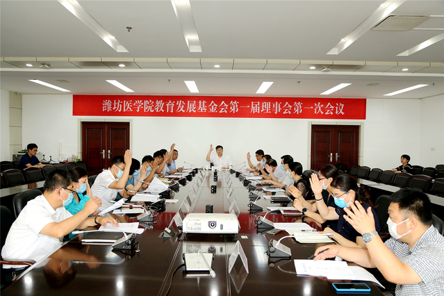 成立大会结束后,潍坊医学教育发展基金会第一届理事会第一次会议召开,新当选的理事和拟任监事参加会议。会议选举刘军同志为第一届理事会理事长,田玉胜、丁木金同志为副理事长,杨瑞贞同志为秘书长。会议表决通过了“拟任基金会监事的决定”《潍坊医学院教育发展基金会章程》《潍坊医学院教育发展基金会接受捐赠管理办法》等6项基金会管理制度、基金会开户银行以及基金会内设机构和人员聘用决定等议题。