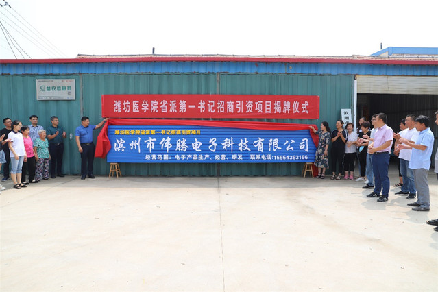 7月28日,潍坊医学院省派下洼镇第一书记招商引资项目“滨州市沾化区伟腾电子科技有限公司”揭牌仪式举行。在公司打工的男女老少和潍坊医学院省派第一书记团队、镇党委书记郭良询一起合了个影,项目热热闹闹正式开工。