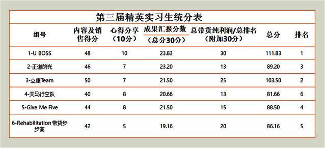 本次活动旨在结合国家创新创业的要求和康复医学发展的特点,开创性的培养康复创新人才,利用互联网平台举行线上活动,充分锻炼和展示学生的医学知识科普能力、创新能力和学习能力。活动共吸引了来自全国37所高校,19个专业199名优秀学生报名,最终选取了60名同学组成六支队伍。在历时20天的实习实践活动中,“立康team”团队经过七名来自康复企业、互联网健康号大V及创业导师的七次培训,通过努力学习,用心创作,大胆尝试,逐渐掌握了直播技巧,从视频小白快速脱颖而出,挖掘出了最大的潜力,展现出了最好的状态。在整个比赛过程中,“立康team”团队共直播4场,总时长4小时,累计发出30条抖音短视频,收获355点赞,发送公众号文章或朋友圈22条,制作海报8张,销售总金额达到510元,取得了103.5分的优异成绩,获得第二名的佳绩。
