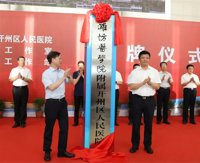 9月8日,潍坊医学院附属开州区人民医院揭牌仪式在重庆市开州区人民医院举行。潍坊市委副书记、市长田庆盈,潍坊医学院党委书记李明,副院长葛国文,重庆开州区委副书记、区长蒋牧宸,开州区卫健委主任李晓海,潍坊市卫健委党组成员、计生协会常务副会长亓传敬,开州区人民医院党委书记谭晓均出席仪式。开州区委常委,副区长吕兴焕主持仪式。