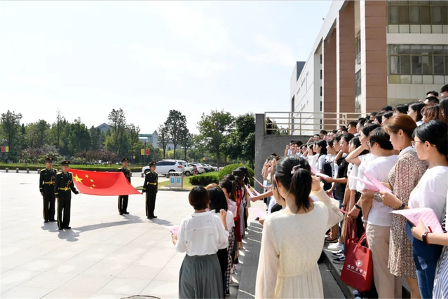 会上,新职工作了自我介绍;人事处处长、教师工作部长于兆锋介绍了本次岗前培训的具体安排。开班仪式结束后,全体新进职工面对国旗举行了庄严的教师宣誓仪式。